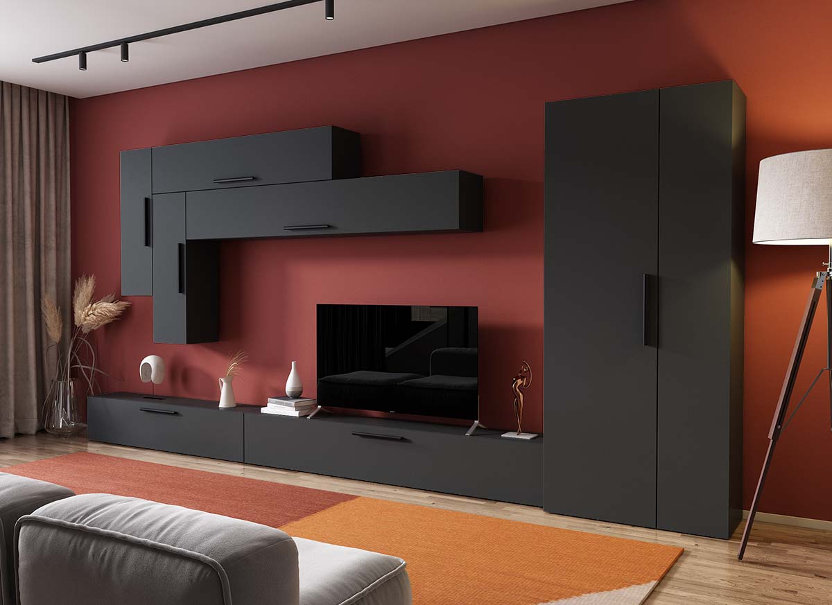 Living Pati 150 – Mobila Sufragerie Gri Antracit Living Pati 150 – Mobila Sufragerie Gri Antracit face parte dintr-o categorie de mobilier modern, contemporan ce imbina designul cu utilitatea. Familia de living Pati are 4 decoruri: stejar, alb, gri si beton . Am realizat peste 100 de configuratii din care puteti alege cu dimensiuni si stiluri diferite. Dulapul de haine este optional si puteti alege unul sau mai multe bucati. Livrare gratuita si rapida, 4-10 zile lucratoare prin flota proprie Suntem producatori de mobilier, fara intermediari Toate piesele de mobilier au o garantie de 2 ani Corpurile sunt construite din PAL melaminat de 16mm. Cantul aplicat este de 0,6 ce le permite muchiilor sa fie placute la atingere . Atentie! Elementele de prindere de tipul dibluri, surub sau horsurub nu sunt incluse deoarce tipul de prindere difera in functie de tipul peretelui pe care urmeaza a se monta mobilierul (beton, caramida, BCA, rigips, lemn etc). Video de prezentare familie Videoul de prezentare poate contine mai multe corpuri de mobilier sau mai putine in comparatie cu produsul de pe aceasta pagina. Scopul acestui video este de a detalia aspectul materialelor, accesoriilor cat si a familiei din care face parte. Dimensiuni Living Pati 150 – Mobila Sufragerie Gri Antracit Imaginea alaturata prezinta compartimentarea pentru mobila de sufragerie Pati. Aceasta configuratie contine urmatoarele corpuri: 2 x Corp 1850: L 185 x H 29 x A 26.7 cm 2 x Corp 1380: L 138 x H 29 x A 26.7 cm 2 x Corp 920: L 92 x H 29 x A 26.7 cm Optional dulap: L 79.8 x H 185 x A 35 cm Dimensiuni totale living Pati Fara dulap: L 323 x A 26.7 x H 185 cm Cu un dulap: L 402.8 x A 35 x H 185 cm Spatiul de TV: diagonala maxima 139 cm. Toate corpurile se pot pune pe stanga sau pe dreapta in functie de cum doriti. Nu este obligatoriu pozitionarea ca in prezentare. Ele nu sunt prinse unul de celalalt, sunt independente. SCHITA MONTAJ CORP 1850 SUPERIOR SCHITA MONTAJ CORP 1850 COMODA SCHITA MONTAJ CORP 1380 COMODA SCHITA MONTAJ CORP 1380 SUPERIOR SCHITA MONTAJ CORP 920 VERTICAL SCHITA MONTAJ dulap 2U Pati Pretul afisat nu include alte accesorii sau obiecte de decor (TV, tablouri, elemente de iluminat, covor etc.) Dimensiunile sunt exprimate in cm si pot oscila intre ± 10 mm. Produsul se livreaza demontat si este insotit de accesorii si instructiuni de asamblare.