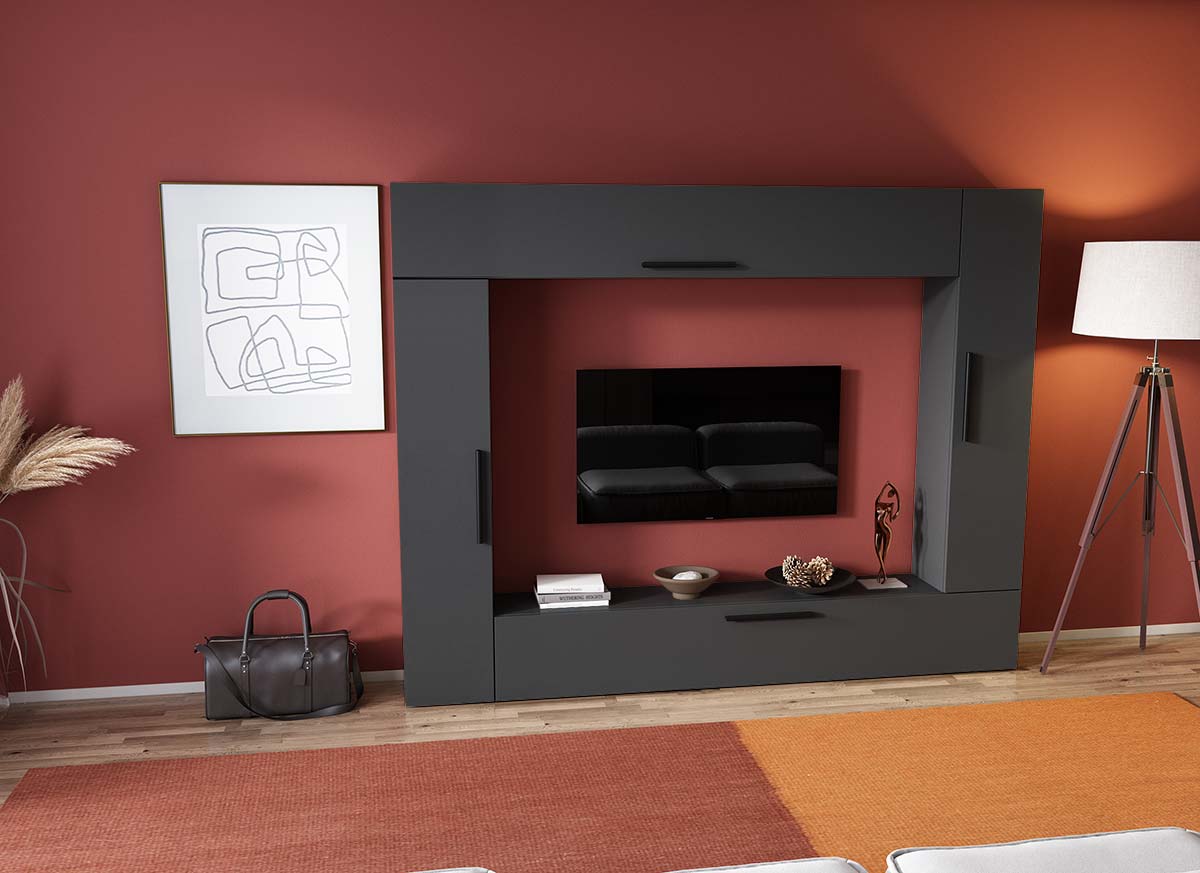 Living Pati 154 – Mobila Sufragerie Gri Antracit Living Pati 154 – Mobila Sufragerie Gri Antracit face parte dintr-o categorie de mobilier modern, contemporan ce imbina designul cu utilitatea. Familia de living Pati are 4 decoruri: stejar, alb, gri si beton . Am realizat peste 100 de configuratii din care puteti alege cu dimensiuni si stiluri diferite. Dulapul de haine este optional si puteti alege unul sau mai multe bucati. Livrare gratuita si rapida, 4-10 zile lucratoare prin flota proprie Suntem producatori de mobilier, fara intermediari Toate piesele de mobilier au o garantie de 2 ani Corpurile sunt construite din PAL melaminat de 16mm. Cantul aplicat este de 0,6 ce le permite muchiilor sa fie placute la atingere . Atentie! Elementele de prindere de tipul dibluri, surub sau horsurub nu sunt incluse deoarce tipul de prindere difera in functie de tipul peretelui pe care urmeaza a se monta mobilierul (beton, caramida, BCA, rigips, lemn etc). Video de prezentare familie Videoul de prezentare poate contine mai multe corpuri de mobilier sau mai putine in comparatie cu produsul de pe aceasta pagina. Scopul acestui video este de a detalia aspectul materialelor, accesoriilor cat si a familiei din care face parte. Dimensiuni Living Pati 154 – Mobila Sufragerie Gri Antracit Imaginea alaturata prezinta compartimentarea pentru mobila de sufragerie Pati. Aceasta configuratie contine urmatoarele corpuri: 2 x Corp 1380: L 138 x H 29 x A 26.7 cm 2 x Corp 1850: L 185 x H 29 x A 26.7 cm Optional dulap: L 79.8 x H 185 x A 35 cm Dimensiuni totale living Pati Fara dulap: L 214 x A 26.7 x H 170 cm Cu un dulap: L 293.8 x A 35 x H 185 cm Spatiul de TV: diagonala maxima 139 cm. Toate corpurile se pot pune pe stanga sau pe dreapta in functie de cum doriti. Nu este obligatoriu pozitionarea ca in prezentare. Ele nu sunt prinse unul de celalalt, sunt independente. SCHITA MONTAJ CORP 1850 SUSPENDAT SCHITA MONTAJ CORP 1850 COMODA SCHITA MONTAJ CORP 1380 VERTICAL SCHITA MONTAJ dulap 2U Pati Pretul afisat nu include alte accesorii sau obiecte de decor (TV, tablouri, elemente de iluminat, covor etc.) Dimensiunile sunt exprimate in cm si pot oscila intre ± 10 mm. Produsul se livreaza demontat si este insotit de accesorii si instructiuni de asamblare.