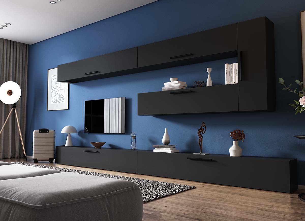 Living Pati 178 – Mobila Sufragerie Gri Antracit Living Pati 178 – Mobila Sufragerie Gri Antracit face parte dintr-o categorie de mobilier modern, contemporan ce imbina designul cu utilitatea. Familia de living Pati are 4 decoruri: stejar, alb, gri si beton . Am realizat peste 100 de configuratii din care puteti alege cu dimensiuni si stiluri diferite. Dulapul de haine este optional si puteti alege unul sau mai multe bucati. Livrare gratuita si rapida, 4-10 zile lucratoare prin flota proprie Suntem producatori de mobilier, fara intermediari Toate piesele de mobilier au o garantie de 2 ani Corpurile sunt construite din  PAL melaminat  de 16mm. Cantul aplicat este de 0,6 ce le permite muchiilor sa fie placute la atingere . Atentie! Elementele de prindere de tipul dibluri, surub sau horsurub nu sunt incluse deoarce tipul de prindere difera in functie de tipul peretelui pe care urmeaza a se monta mobilierul (beton, caramida, BCA, rigips, lemn etc). Video de prezentare familie Videoul de prezentare poate contine mai multe corpuri de mobilier sau mai putine in comparatie cu produsul de pe aceasta pagina. Scopul acestui video este de a detalia aspectul materialelor, accesoriilor cat si a familiei din care face parte. Dimensiuni Living Pati 178 – Mobila Sufragerie Gri Antracit Imaginea alaturata prezinta compartimentarea pentru mobila de sufragerie Pati. Aceasta configuratie contine urmatoarele corpuri: 3 x Corp 1850: L 185 x H 29 x A 26.7 cm 2 x Corp 1380: L 138 x H 29 x A 26.7 cm 1 x Corp 920: L 92 x H 29 x A 26.7 cm Optional dulap: L 79.8 x H 185 x A 35 cm Dimensiuni totale living Pati Fara dulap: L 370 x A 26.7 x H 175cm Cu un dulap: L 449.8 x A 35 x H 185cm Spatiul de TV: diagonala maxima 139 cm. Toate corpurile se pot pune pe stanga sau pe dreapta in functie de cum doriti. Nu este obligatoriu pozitionarea ca in prezentare. Ele nu sunt prinse unul de celalalt, sunt independente. SCHITA MONTAJ CORP 1850 SUPERIOR SCHITA MONTAJ CORP 1850 COMODA SCHITA MONTAJ CORP 1380 SUPERIOR SCHITA MONTAJ CORP 1380 INFERIOR SCHITA MONTAJ CORP 920 VERTICAL SCHITA MONTAJ dulap 2U Pati Pretul afisat nu include alte accesorii sau obiecte de decor (TV, tablouri, elemente de iluminat, covor etc.)  Dimensiunile sunt exprimate in cm si pot oscila intre ± 10 mm.  Produsul se livreaza demontat si este insotit de accesorii si instructiuni de asamblare.