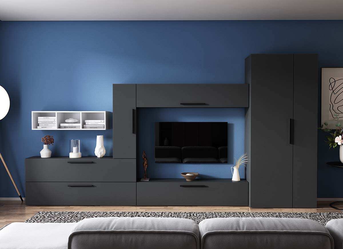 Living Pati 182 – Mobila Sufragerie Gri Antracit Living Pati 182 – Mobila Sufragerie Gri Antraci t face parte dintr-o categorie de mobilier modern, contemporan ce imbina designul cu utilitatea. Familia de living Pati are 4 decoruri: stejar, alb, gri si beton . Am realizat peste 100 de configuratii din care puteti alege cu dimensiuni si stiluri diferite. Dulapul de haine este optional si puteti alege unul sau mai multe bucati. Livrare gratuita si rapida, 4-10 zile lucratoare prin flota proprie Suntem producatori de mobilier, fara intermediari Toate piesele de mobilier au o garantie de 2 ani Corpurile sunt construite din PAL melaminat de 16mm. Cantul aplicat este de 0,6 ce le permite muchiilor sa fie placute la atingere . Atentie! Elementele de prindere de tipul dibluri, surub sau horsurub nu sunt incluse deoarce tipul de prindere difera in functie de tipul peretelui pe care urmeaza a se monta mobilierul (beton, caramida, BCA, rigips, lemn etc). Video de prezentare familie Videoul de prezentare poate contine mai multe corpuri de mobilier sau mai putine in comparatie cu produsul de pe aceasta pagina. Scopul acestui video este de a detalia aspectul materialelor, accesoriilor cat si a familiei din care face parte. Dimensiuni Living Pati 182 – Mobila Sufragerie Gri Antracit Imaginea alaturata prezinta compartimentarea pentru mobila de sufragerie Pati. Aceasta configuratie contine urmatoarele corpuri: 4 x Corp 1380: L 138 x H 29 x A 26.7 cm 1 x Corp 920: L 92 x H 29 x A 26.7 cm 1 x Corp decorativ: L 91.5 x H 23.2 x A 25 cm Optional dulap: L 79.8 x H 185 x A 35 cm Dimensiuni totale living Pati Fara dulap: L 276 x A 26.7 x H 160 cm Cu un dulap: L 355.8 x A 35 x H 185 cm Spatiul de TV: diagonala maxima 139 cm. Toate corpurile se pot pune pe stanga sau pe dreapta in functie de cum doriti. Nu este obligatoriu pozitionarea ca in prezentare. Ele nu sunt prinse unul de celalalt, sunt independente. SCHITA MONTAJ corp 1380 comoda / inferior SCHITA MONTAJ CORP 1380 SUPERIOR SCHITA MONTAJ CORP 920 vertical SCHITA MONTAJ CORP DECORATIV SCHITA MONTAJ dulap 2U Pati Pretul afisat nu include alte accesorii sau obiecte de decor (TV, tablouri, elemente de iluminat, covor etc.) Dimensiunile sunt exprimate in cm si pot oscila intre ± 10 mm. Produsul se livreaza demontat si este insotit de accesorii si instructiuni de asamblare.