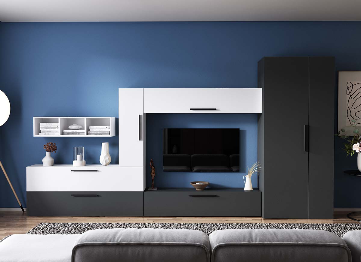 Living Pati 183 – Mobila Sufragerie Gri Antracit + Alb Living Pati 183 – Mobila Sufragerie Gri Antracit + Alb face parte dintr-o categorie de mobilier modern, contemporan ce imbina designul cu utilitatea. Familia de living Pati are 4 decoruri: stejar, alb, gri si beton . Am realizat peste 100 de configuratii din care puteti alege cu dimensiuni si stiluri diferite. Dulapul de haine este optional si puteti alege unul sau mai multe bucati. Livrare gratuita si rapida, 4-10 zile lucratoare prin flota proprie Suntem producatori de mobilier, fara intermediari Toate piesele de mobilier au o garantie de 2 ani Corpurile sunt construite din PAL melaminat de 16mm. Cantul aplicat este de 0,6 ce le permite muchiilor sa fie placute la atingere . Atentie! Elementele de prindere de tipul dibluri, surub sau horsurub nu sunt incluse deoarce tipul de prindere difera in functie de tipul peretelui pe care urmeaza a se monta mobilierul (beton, caramida, BCA, rigips, lemn etc). Video de prezentare familie Videoul de prezentare poate contine mai multe corpuri de mobilier sau mai putine in comparatie cu produsul de pe aceasta pagina. Scopul acestui video este de a detalia aspectul materialelor, accesoriilor cat si a familiei din care face parte. Dimensiuni Living Pati 183 – Mobila Sufragerie Gri Antracit + Alb Imaginea alaturata prezinta compartimentarea pentru mobila de sufragerie Pati. Aceasta configuratie contine urmatoarele corpuri: 4 x Corp 1380: L 138 x H 29 x A 26.7 cm 1 x Corp 920: L 92 x H 29 x A 26.7 cm 1 x Corp decorativ: L 91.5 x H 23.2 x A 25 cm Optional dulap: L 79.8 x H 185 x A 35 cm Dimensiuni totale living Pati Fara dulap: L 276 x A 26.7 x H 160 cm Cu un dulap: L 355.8 x A 35 x H 185 cm Spatiul de TV: diagonala maxima 139 cm. Toate corpurile se pot pune pe stanga sau pe dreapta in functie de cum doriti. Nu este obligatoriu pozitionarea ca in prezentare. Ele nu sunt prinse unul de celalalt, sunt independente. SCHITA MONTAJ corp 1380 comoda / inferior SCHITA MONTAJ CORP 1380 SUPERIOR SCHITA MONTAJ CORP 920 vertical SCHITA MONTAJ CORP DECORATIV SCHITA MONTAJ dulap 2U Pati Pretul afisat nu include alte accesorii sau obiecte de decor (TV, tablouri, elemente de iluminat, covor etc.) Dimensiunile sunt exprimate in cm si pot oscila intre ± 10 mm. Produsul se livreaza demontat si este insotit de accesorii si instructiuni de asamblare.
