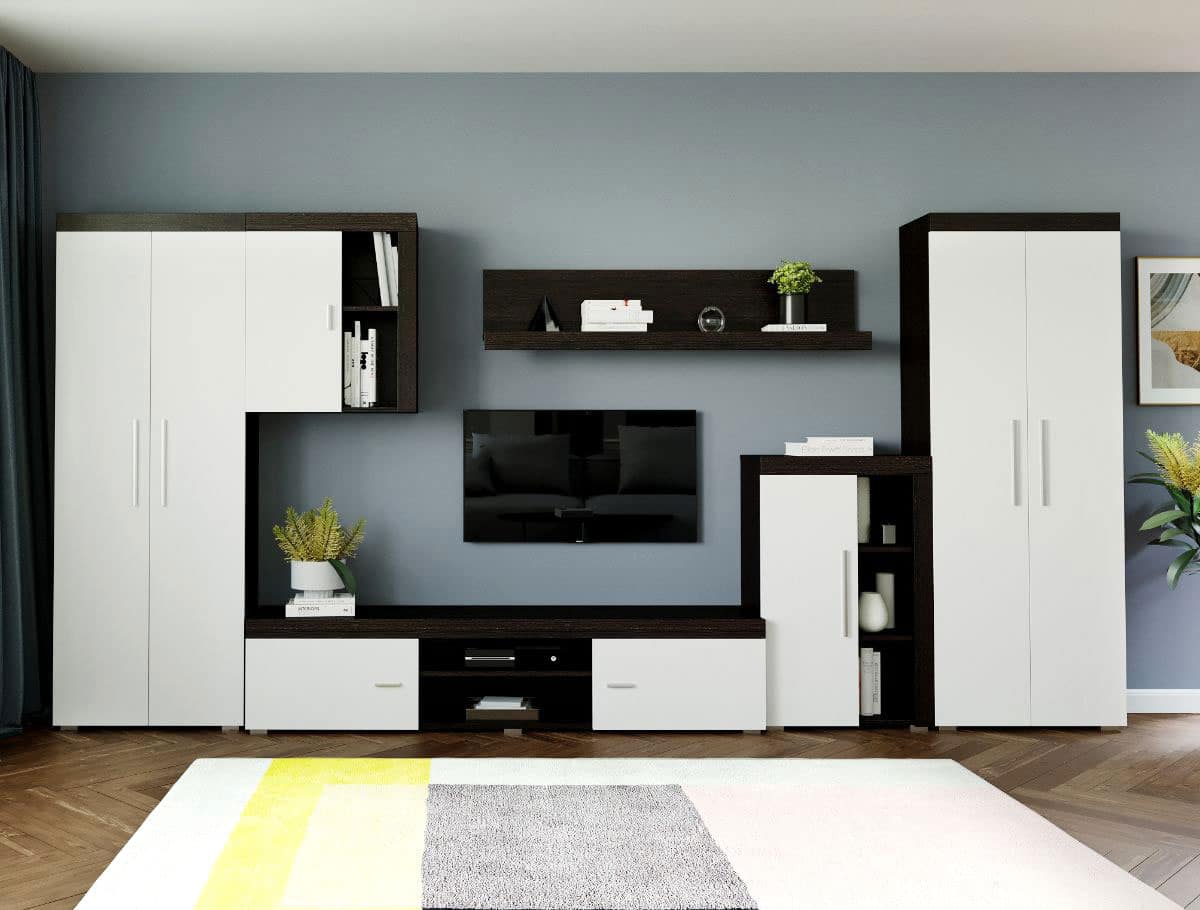 Living Milan Modul A Comoda Lunga Living Milan Modul B Comoda Inalta Living Milan Modul E Corp Suspendat Living Milan – Modul F / G Polita Living Milan – Modul H Dulap Mobila sufragerie – Living Milan C2 DUO Mobila sufragerie – Living Milan C2 DUO face parte din familia de mobila pentru living Milan. Aceasta familie are un aspect modern si este compusa din mai multe module. Fara surprize la livrare, diferente de culoare sau calitate Livrare gratuita si rapida, 4-10 zile lucratoare prin flota proprie Suntem producatori de mobilier, fara intermediari Toate piesele de mobilier au o garantie de 2 ani Puteti alege direct din configuratiile realizate de noi sau daca doriti puteti creea singuri propria configuratie de living combinand din cele 8 corpuri de mobila. In functie de spatiul unde doriti sa amplasati mobila puteti adapta livingul pentru o potrivire perfecta. Corpurile sunt construite din PAL melaminat de 16mm cu finisaj Ferrara si Alb Mat, o textura similara lemnului, care creeaza un contrast rafinat si un ambient placut. Cantul aplicat este unul de 0,6 care le permite muchiilor sa fie plăcute la atingere fiind finisate si atent retusate. Dimensiuni Mobila sufragerie – Living Milan C2 DUO Imaginea alaturata prezinta compartimentarea interioara si exterioara pentru mobila de sufragerie Milan. Aceasta configuratie are 6 corpuri modulare , 2 suspendate si 4 pe sol. Spatii de depozitare cu usa cat si etajere si polita. Dulapurile au cate 2 spatii de depozitare si o bara pentru haine. Pot fi folosite si pentru haine cat si pentru obiecte diverse. Dimensiuni corpuri: Comoda TV: L 180 x A 35.2 x H 39.8cm Comoda Inalta: L 60 x A 30.4 x H 96.8cm Dulap 2 usi x 2 buc: L 67.6 x A 30.4 x H 182cm Corp Suspendat: L 60 x A 30.4 x H 69.8cm Polita 1390 : L 139 x A 21.6 x H 34.8cm Dimensiuni totale livin L 375.2 x A 35.2 x H 182 cm Spatiul de TV: diagonala max 126cm/50″ (sau mai mare) Recomandam un TV cu o diagonala de maxim 126cm/50″. Se pot pune si TV-uri cu diagonala mai mare mutand corpul suspendat in alta pozitie. Dulapurile si toate corpurile se pot pune pe stanga sau pe dreapta in functie de cum doriti. Nu este obligatoriu pozitionarea ca in prezentare. Ele nu sunt prinse fix unul de celalalt. Info si schite montaj mobila sufragerie DESCARCA SCHITA MONTAJ COMODA LUNGA MILAN DESCARCA SCHITA MONTAJ COMODA INALTA MILAN DESCARCA SCHITA MONTAJ CORP SUSPENDAT MILAN DESCARCA SCHITA MONTAJ POLITA MILAN DESCARCA SCHITA MONTAJ DULAP MILAN Atentie! Elementele de prindere de tipul dibluri, surub sau horsurub nu sunt incluse deoarce tipul de prindere difera in functie de tipul peretelui pe care urmeaza a se monta mobilierul (beton, caramida, BCA, rigips, lemn etc). Pretul afisat nu include alte accesorii sau obiecte de decor (TV, tablouri, elemente de iluminat, covor etc.). Dimensiunile sunt exprimate in cm si pot oscila intre ± 10 mm. Produsul se livreaza demontat si este insotit de accesorii si instructiuni de asamblare.