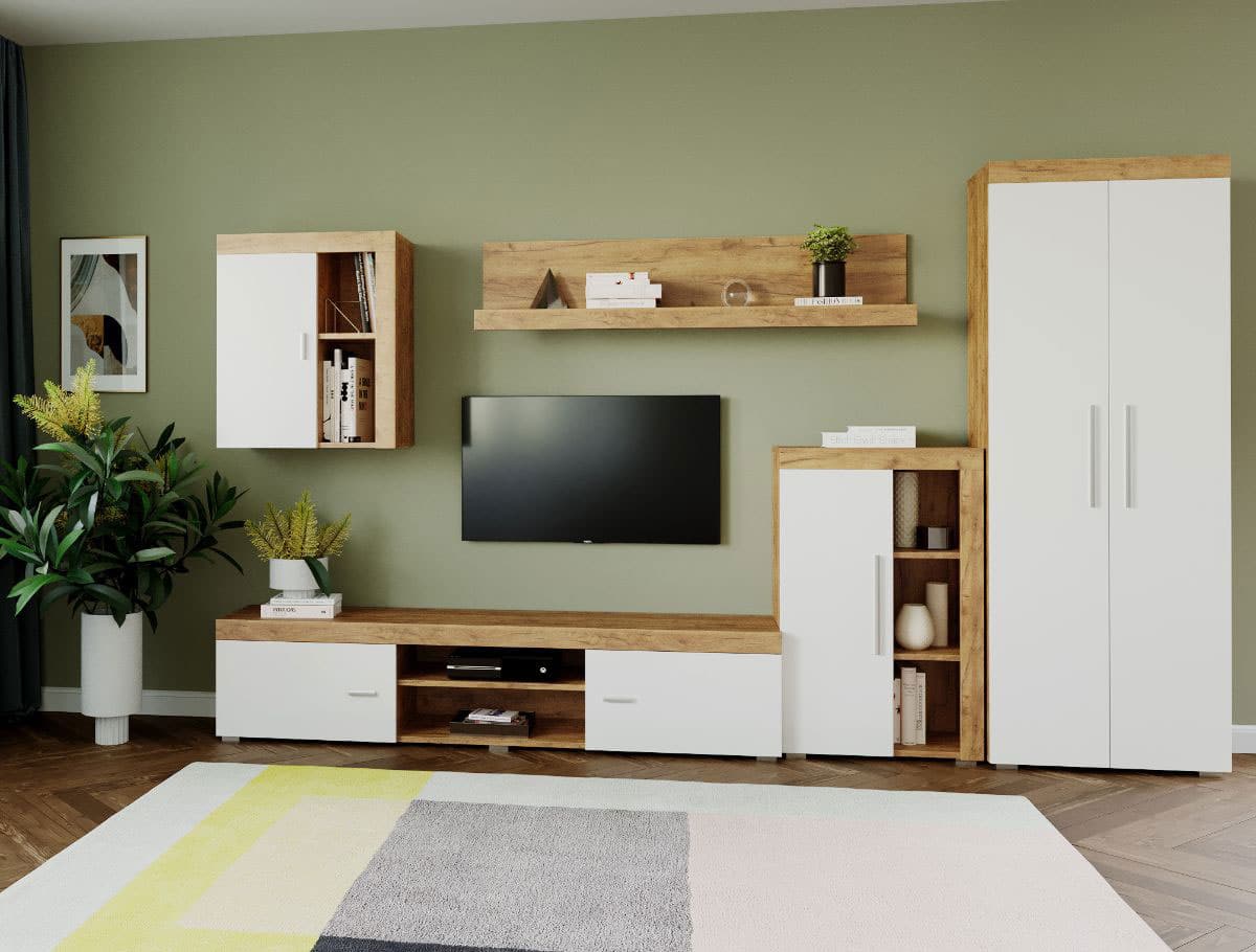 Living Milan Modul A Comoda Lunga Living Milan Modul B Comoda Inalta Living Milan Modul E Corp Suspendat Living Milan – Modul F / G Polita Living Milan – Modul H Dulap Mobila sufragerie – Living Milan C2 UNO Stejar Mobila sufragerie – Living Milan C2 UNO Stejar face parte din familia de mobila pentru living Milan. Aceasta familie are un aspect modern si este compusa din mai multe module. Fara surprize la livrare, diferente de culoare sau calitate Livrare gratuita si rapida, 4-10 zile lucratoare prin flota proprie Suntem producatori de mobilier, fara intermediari Toate piesele de mobilier au o garantie de 2 ani Puteti alege direct din configuratiile realizate de noi sau daca doriti puteti creea singuri propria configuratie de living combinand din cele 8 corpuri de mobila. In functie de spatiul unde doriti sa amplasati mobila puteti adapta livingul pentru o potrivire perfecta. Corpurile sunt construite din PAL Kronospan melaminat de 16mm cu finisaj Stejar Auriu si Alb Mat, o textura similara lemnului, care creeaza un contrast rafinat si un ambient placut. Cantul aplicat este unul de 0,6 care le permite muchiilor sa fie plăcute la atingere fiind finisate si atent retusate. Dimensiuni Mobila sufragerie – Living Milan C2 UNO Stejar Imaginea alaturata prezinta compartimentarea interioara si exterioara pentru mobila de sufragerie Milan. Aceasta configuratie are 5 corpuri modulare , 2 suspendate si 3 pe sol. Spatii de depozitare cu usa cat si etajere si polita. Dulapul are 2 spatii de depozitare si o bara pentru haine. Poate fi folosit si pentru haine cat si pentru obiecte diverse. Dimensiuni corpuri: Comoda TV: L 180 x A 35.2 x H 39.8cm Comoda Inalta: L 60cm x A 30.4 x H 96.8cm Dulap 2 usi: L 67.6 x A 30.4 x H 182cm Corp Suspendat: L 60 x A 30.4 x H 69.8cm Polita 1390 : L 139 x A 21.6 x H 34.8cm Dimensiuni totale livin L 307.6 x A 35.2 x H 182cm Spatiul de TV: diagonala max 126cm/50″ (sau mai mare) Recomandam un TV cu o diagonala de maxim 126cm/50″. Se pot pune si TV-uri cu diagonala mai mare mutand corpul suspendat mai in stanga. Dulapul si toate corpurile se pot pune pe stanga sau pe dreapta in functie de cum doriti. Nu este obligatoriu pozitionarea ca in prezentare. Ele nu sunt prinse fix unul de celalalt. Info si schite montaj mobila sufragerie DESCARCA SCHITA MONTAJ COMODA LUNGA MILAN DESCARCA SCHITA MONTAJ COMODA INALTA MILAN DESCARCA SCHITA MONTAJ CORP SUSPENDAT MILAN DESCARCA SCHITA MONTAJ POLITA MILAN DESCARCA SCHITA MONTAJ DULAP MILAN Atentie! Elementele de prindere de tipul dibluri, surub sau horsurub nu sunt incluse deoarce tipul de prindere difera in functie de tipul peretelui pe care urmeaza a se monta mobilierul (beton, caramida, BCA, rigips, lemn etc). Pretul afisat nu include alte accesorii sau obiecte de decor (TV, tablouri, elemente de iluminat, covor etc.). Dimensiunile sunt exprimate in cm si pot oscila intre ± 10 mm. Produsul se livreaza demontat si este insotit de accesorii si instructiuni de asamblare.
