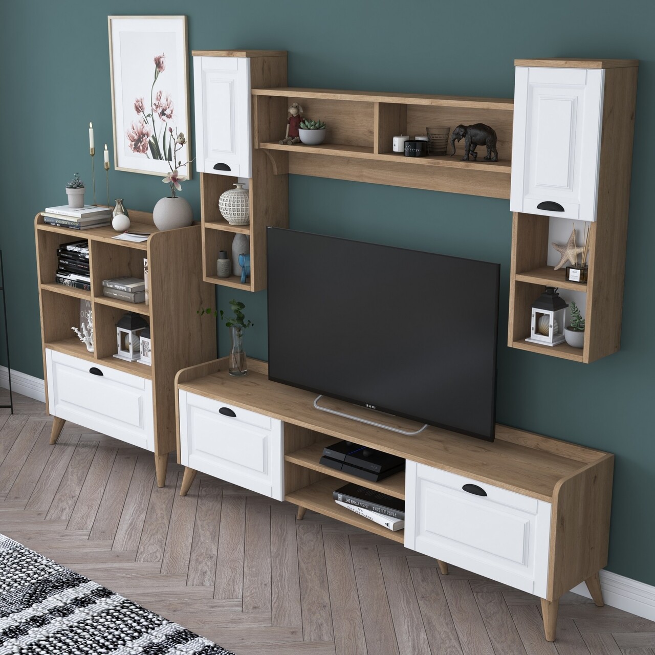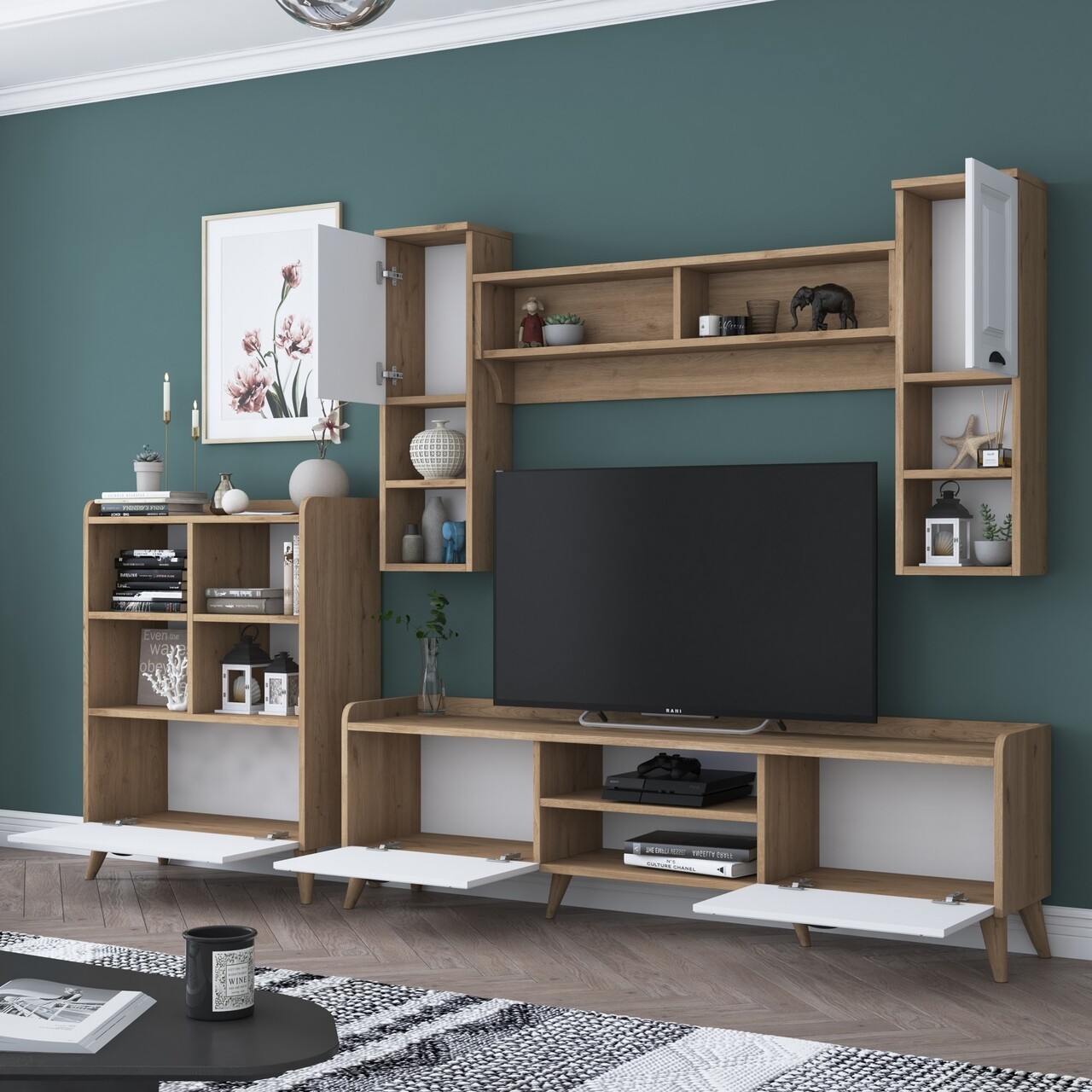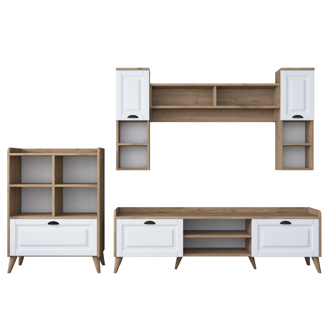 Mobilier living, Wren, AA101 – 2554, 3 corpuri, pal melaminat, alb/nuc