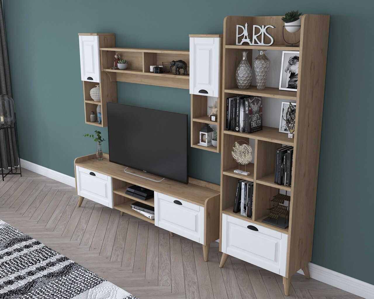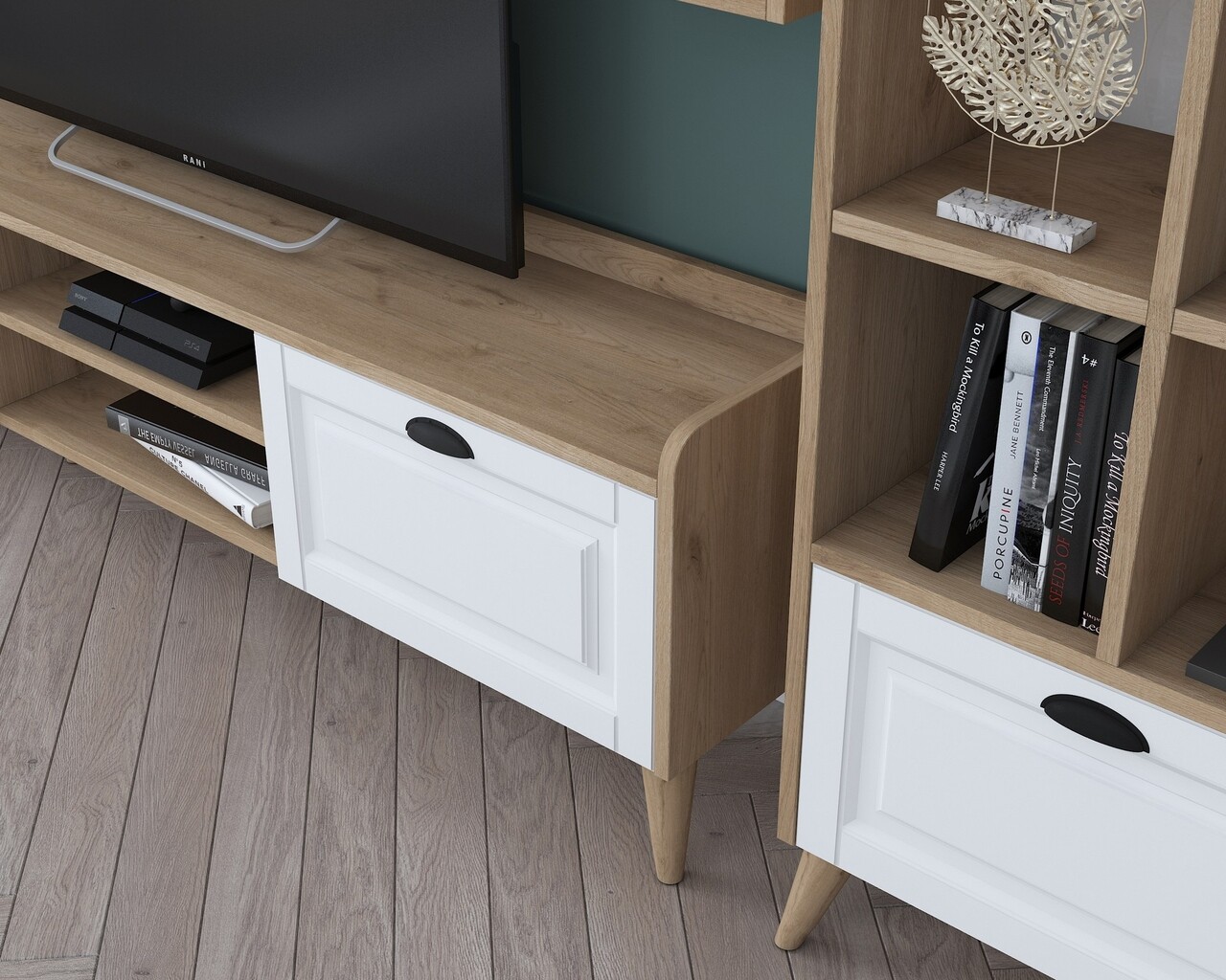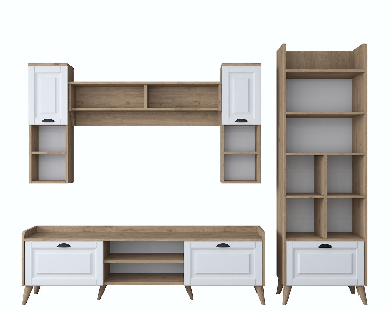 Mobilier living, Wren, AA101 – 2555, 3 corpuri, pal melaminat, alb/nuc