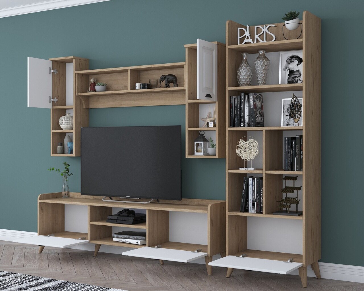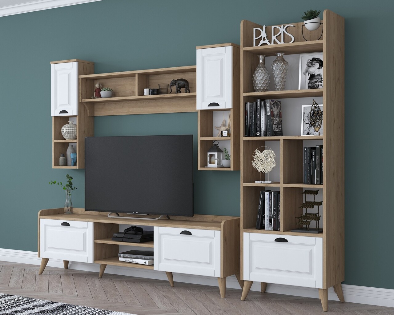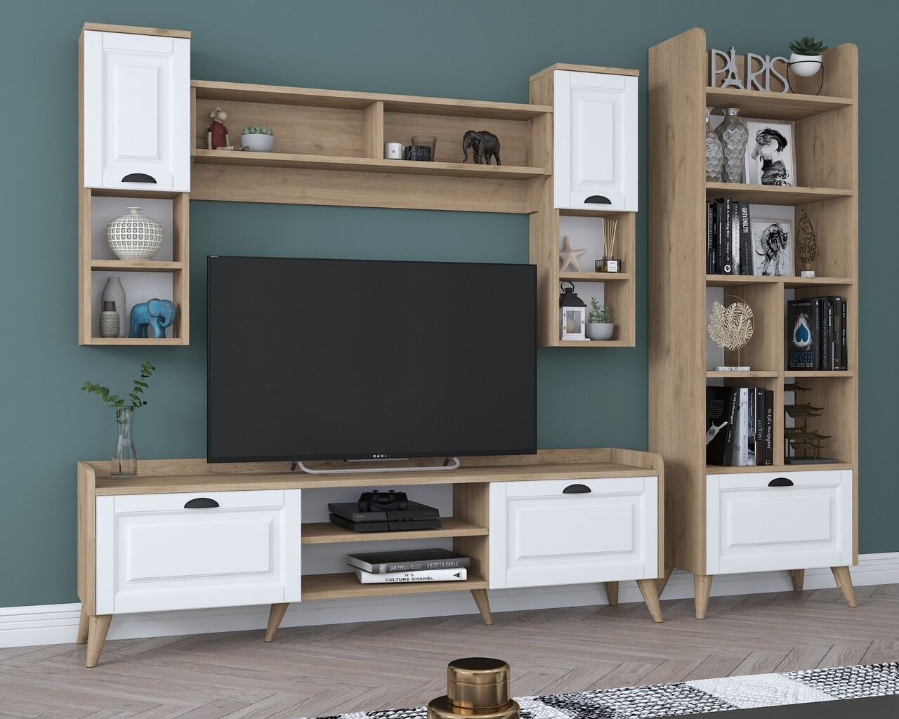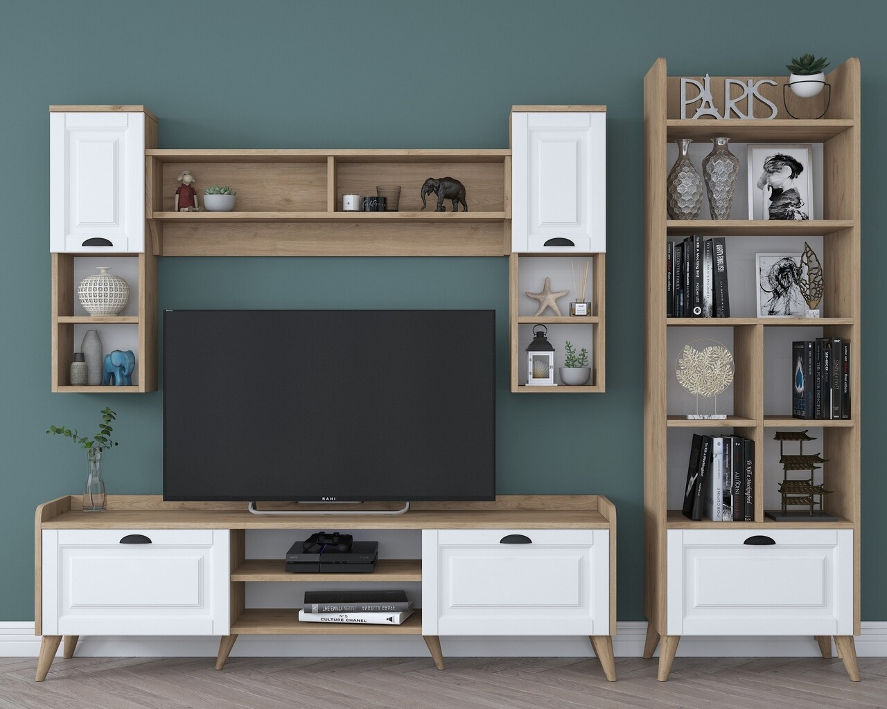 Mobilier living, Wren, AA101 – 2555, 3 corpuri, pal melaminat, alb/nuc