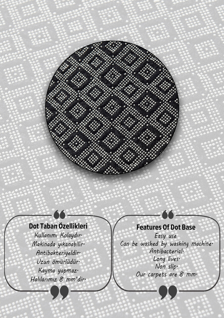 <p>Inaltime fire: 10 mm<br/><br/>Antibacterian<br/><br/>Partea inferioara anti-alunecare<br/><br/>Se poate spala la masina<br/><br/>Diametru: 100 cm<br/><br/>700 gr/m²<br/></p>