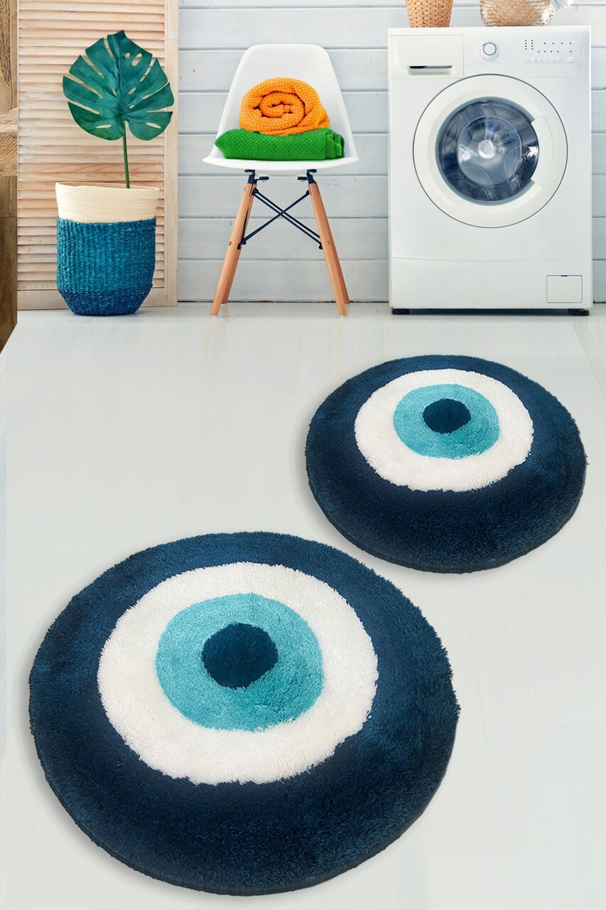 Set covorase de baie 2 piese, Chilai, Nazar, Acril, Turcoaz / Alb / Albastru / Negru