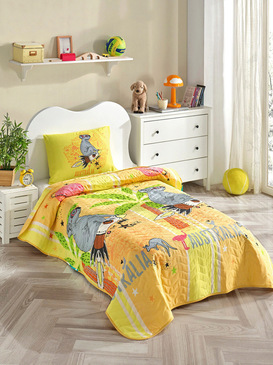 Cuvertura Single 155×200 cm, Koala – Yellow, Eponj Home, 65% bumbac/35% poliester