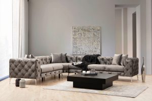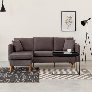Coltar stanga Montana material textil gri bej cu perne gri deschis 275x215x93 cm