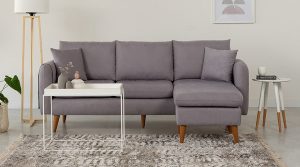 Coltar dreapta Montana tesatura gri-bej cu perne gri deschis 275x215x93 cm