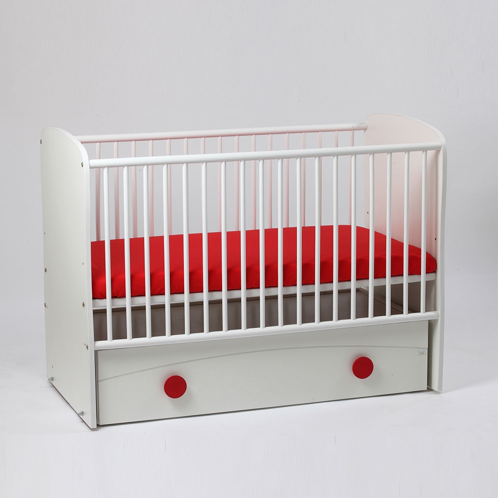 Patut cu sistem de leganare, grilajul din fata este detasabil complet, sertar voluminos.