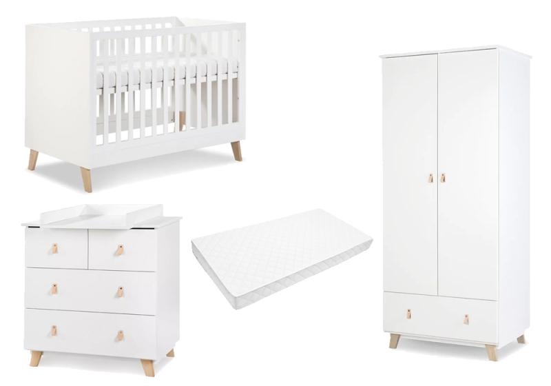 Pachetul include patut cu saltea, comoda si dulap.
