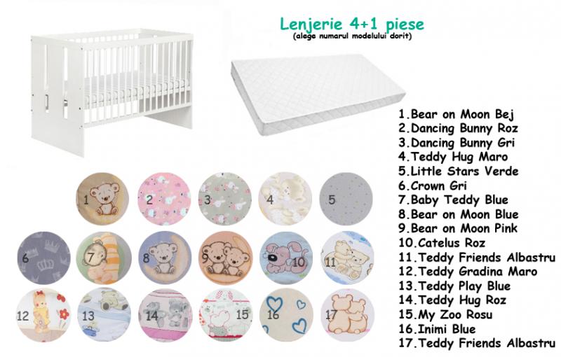 Pachet 3 in 1 Patut + Saltea MyKids Confort 120x60x10 + Lenjerie 4+1nbsp pieseATENTIE – La plasarea comenzii va rugam sa specificati la observatii numarul si denumirea modelului de lenjerie ales.Patut