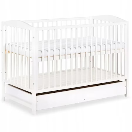 Acest pat pentru copii, este simplu, alb, confortabil, sigur si se potriveste cu orice decor.Marginile previn caderile copilului din pat, in timpul somnuluiSertarul inclus este foarte practic si spati
