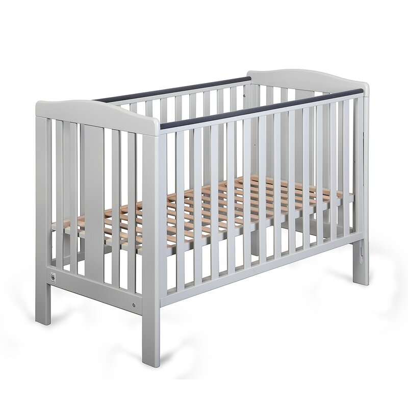 Patut cu laterala culisanta YappyQu din lemn de mesteacan cu sina speciala pentru dentitie suport pentru saltea reglabil 120×60 cm Gri YappyKids