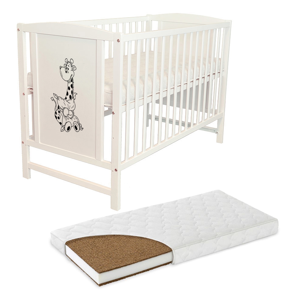 Patut din lemn masiv 120×60 cm Bria alb si bariera cu saltea de 10 cm
