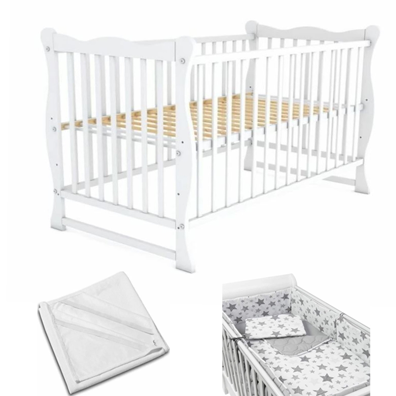 Patut din lemn masiv 120×60 cm Isla alb, include protectie impermeabila si set lenjerie matlasata 5 piese Kidizi