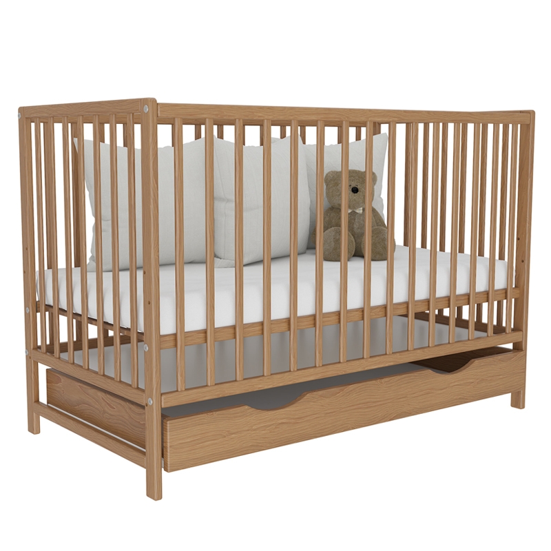 Somiera patutului poate fi reglata pe trei nivele in functie de nevoi. Fabricat din lemn masiv de stejar si vopsit cu lac ecologic.