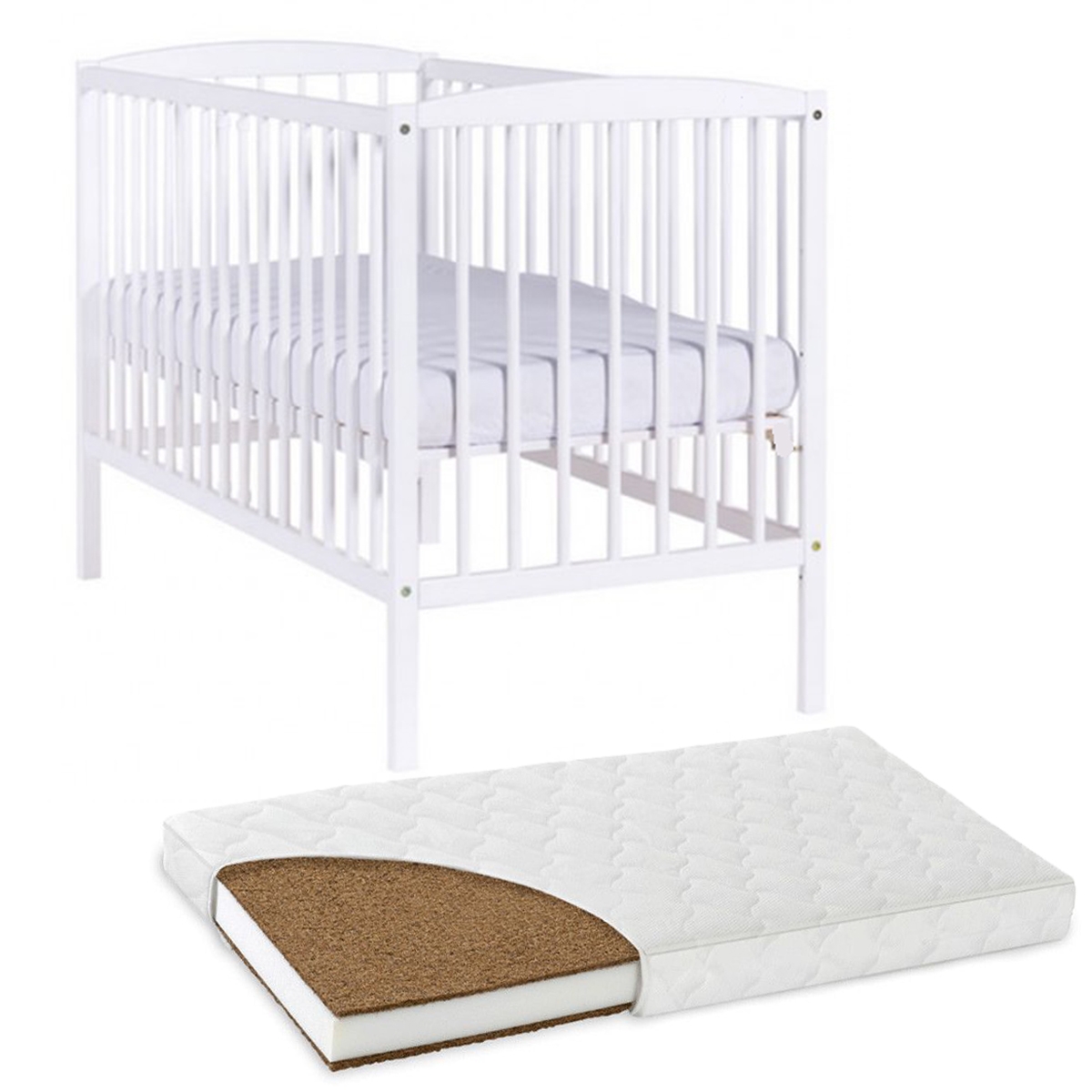 Patut din lemn masiv 120×60 cm Orella alb + saltea cocos 12 cm