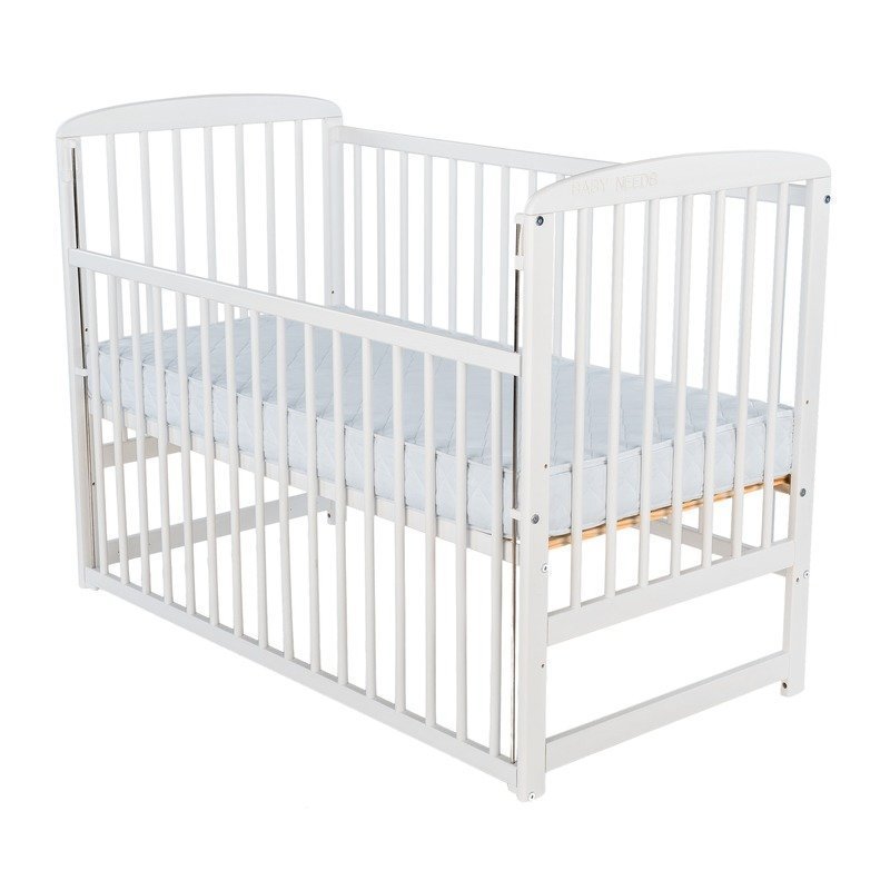 Patut din lemn Ola BabyNeeds 120×60 cm cu laterala culisanta Alb + Saltea 12 cm