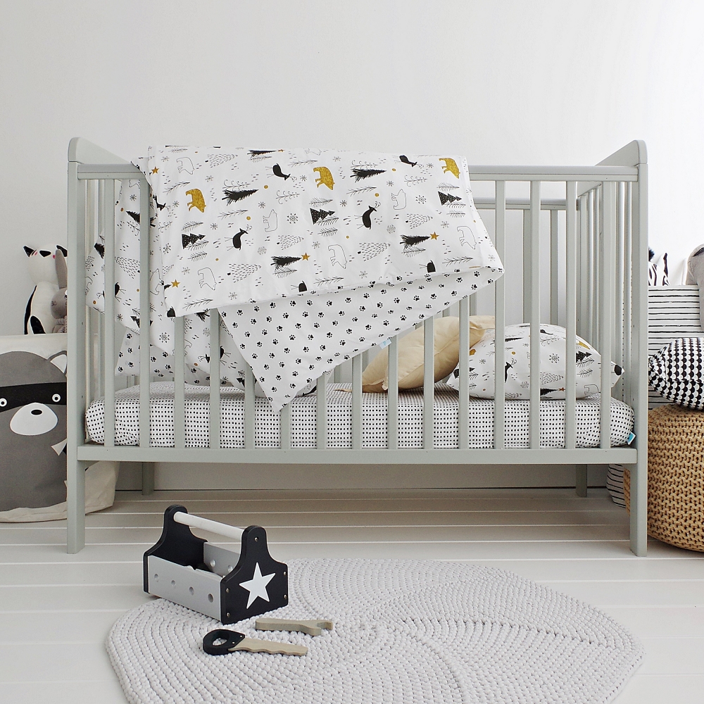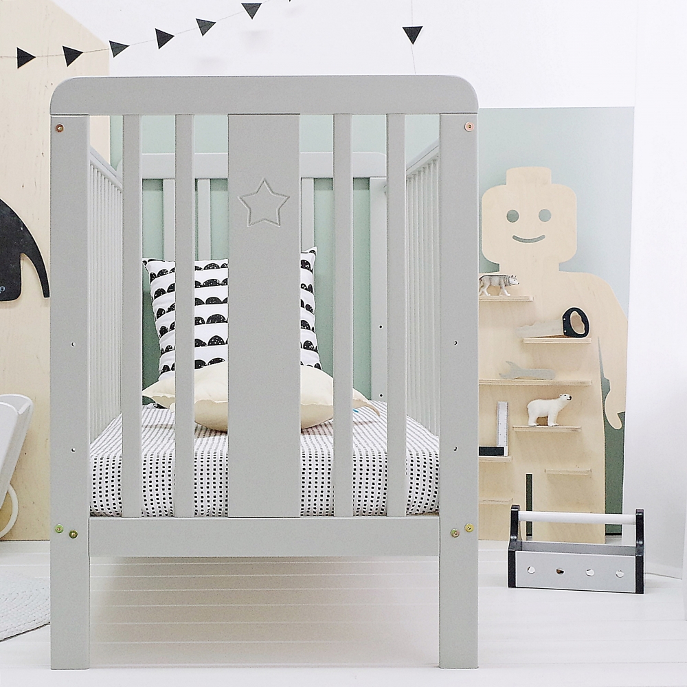 Patut din lemn pentru bebe inaltime saltea reglabila Star Baby Gri 120×60 cm