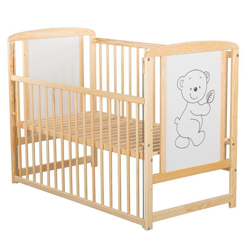 Patut din lemn Timmi BabyNeeds 120×60 cm cu laterala culisanta Natur + Saltea 8 cm