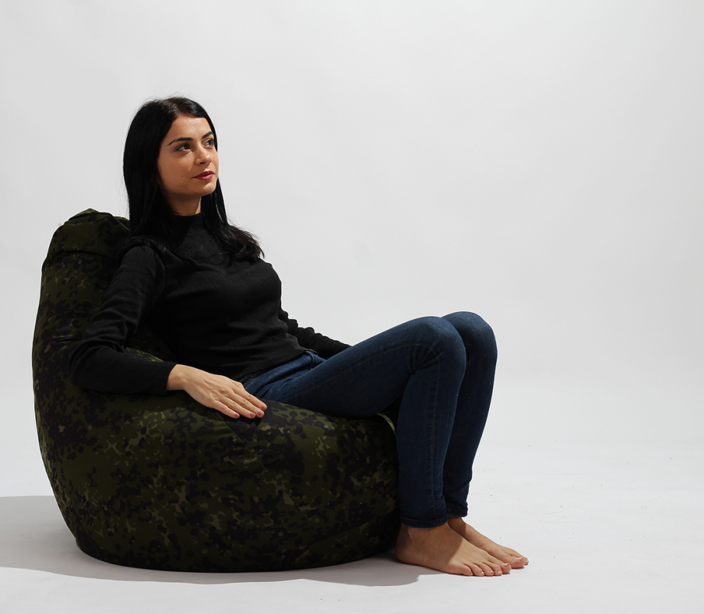 Fotoliu Pufrelax nirvana hobbit army camouflagecu husa detasabila textila umplut cu perle polistiren