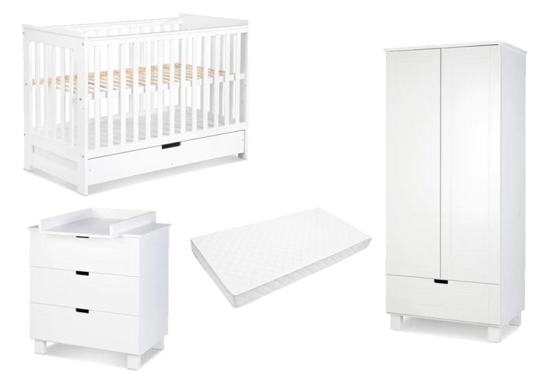 Componentele mobilierului pentru copii sinbspbebelusinbspKlups Iwo Alb-Patut Iwo Alb120(L) x 60(l) cm-Comoda de infasat Iwo Alb89(L)nbspx 55(l)nbspx 84(h) cm-Saltea copii Cocos Confort 120(L) x 60(l)