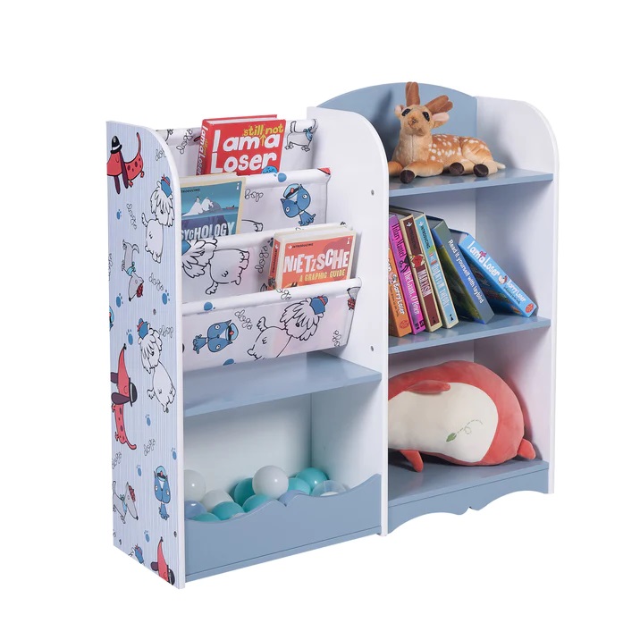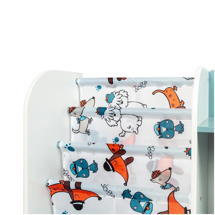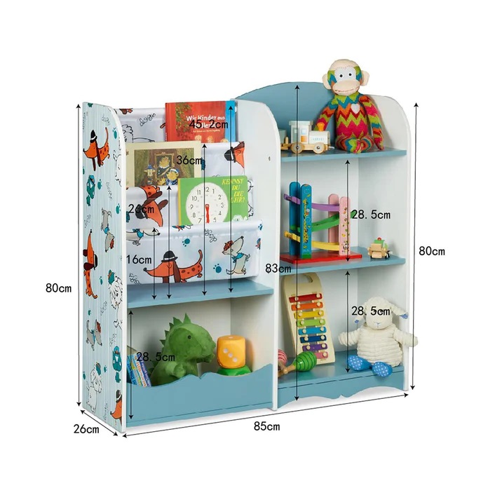 Organizator practic pentru copii din lemn cu un motiv simpatic de catelusi de diferite rase.Caracteristici- Adauga spatiu de stocare suplimentar oricarei camera, sufragerie sau camera de studiu pentru
