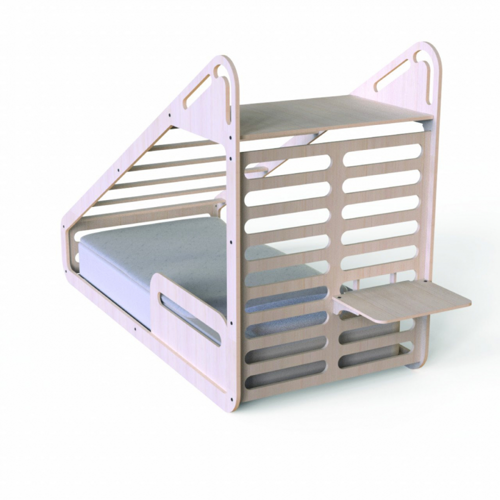 Pat Montessori de la MamaToyz, din lemn, cu tobogan, tabla de scris, masuta si leagan este in acelasi timp locul de somn al celui mic dar si cel mai tare loc de joaca.Caracteristici- o alternativa cu