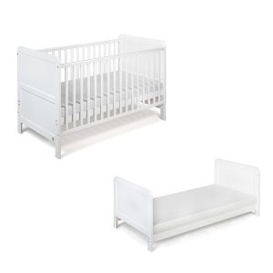 Patut transformabil YappyClassic din lemn + Saltea spuma eco 9 cm , YappyKids, 140×70 cm, Alb
