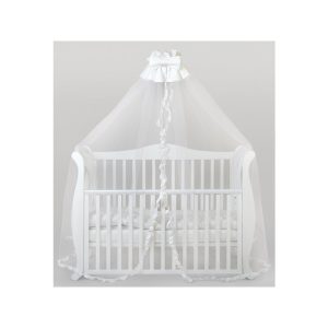 Patut din lemn masiv 120×60 cm Bria alb cu laterala culisanta si saltea 10 cm