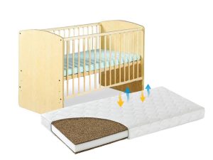 Patut co-sleeping 120×60 cu laterala culisanta total si roti Treppy Dreamy Plus, integral din lemn masiv fag, reglabil pe 5 nivele, include sistem de ancorare, certificat TUV, EN716-1, EN716-2, culoare natur + saltea cocos 12 cm