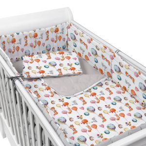 Set lenjerie matlasata 5 piese Kidizi Baloon Friends, include perna, plapumioara, aparatoare si cearceaf
