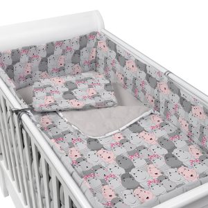 Set lenjerie matlasata 5 piese pentru patut 140×70 cm Kidizi All Pink Stars
