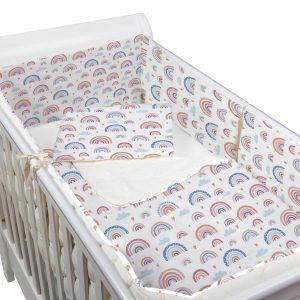 Set lenjerie matlasata 5 piese Kidizi Blue Rainbow, include perna, plapumioara, aparatoare si cearceaf