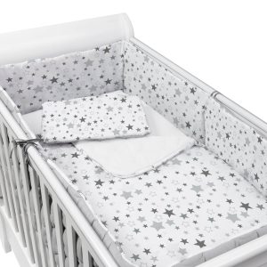 Set lenjerie matlasata 4 piese Kidizi Magic Stars Grey, include perna, plapumioara, aparatoare si cearceaf