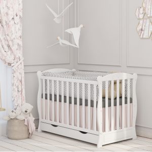 Patut din lemn masiv 120×60 cm Bethany alb cu sertar si saltea de 12 cm