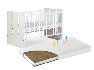 Patut din lemn masiv 120×60 cm Bria alb + saltea cocos 12 cm