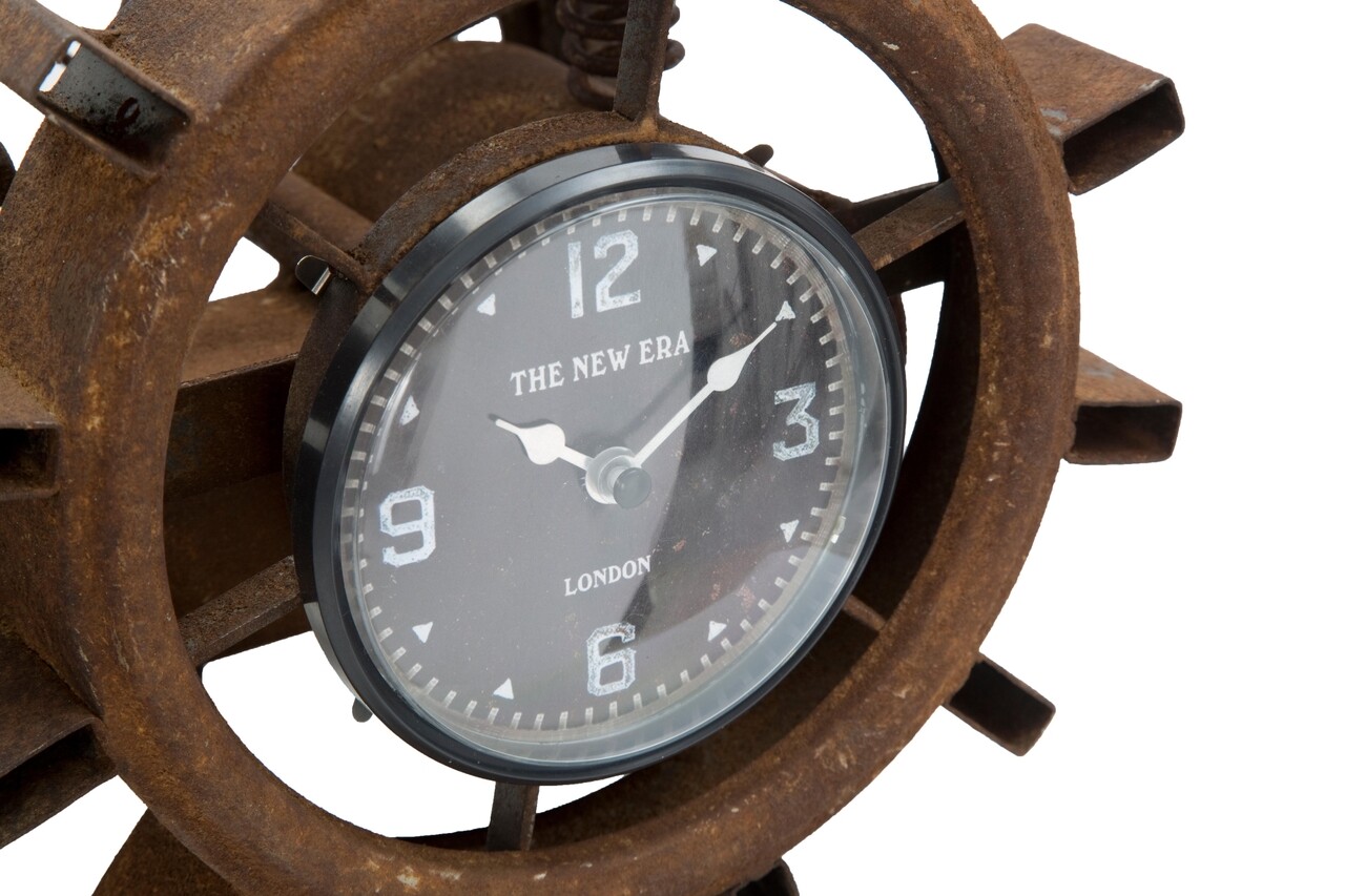 <p>Compozitie material: fier, MDF<br />Functioneaza cu 1 baterie de tip AA, neinclusa<br />Produsul are aspect antichizat</p>