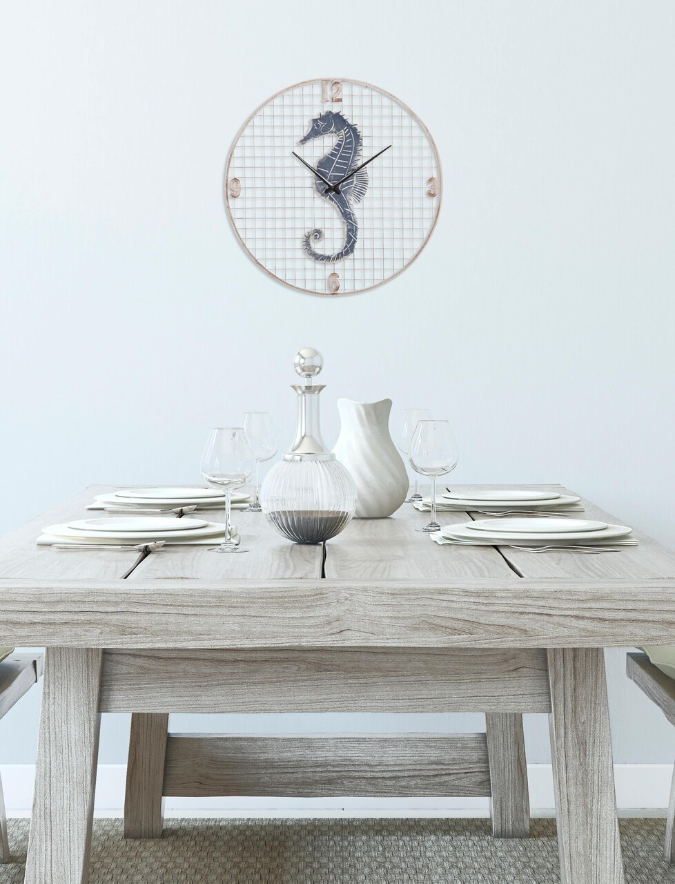 Ceas de perete Sea Horse, Mauro Ferretti, Ø 55.5 cm, fier, alb/albastru