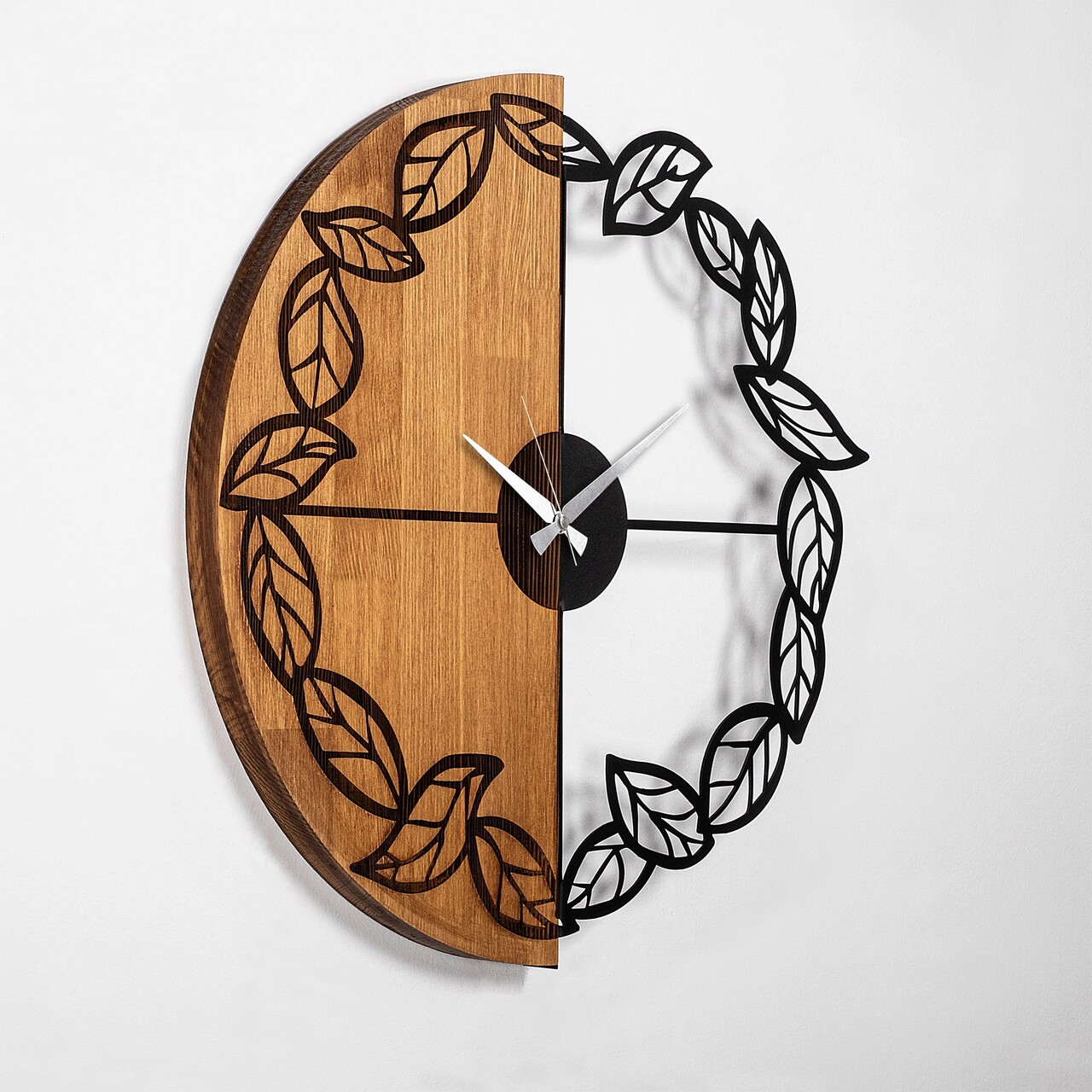 Ceas de perete, Wooden Clock, Lemn/metal, ø56 cm, Nuc / Negru