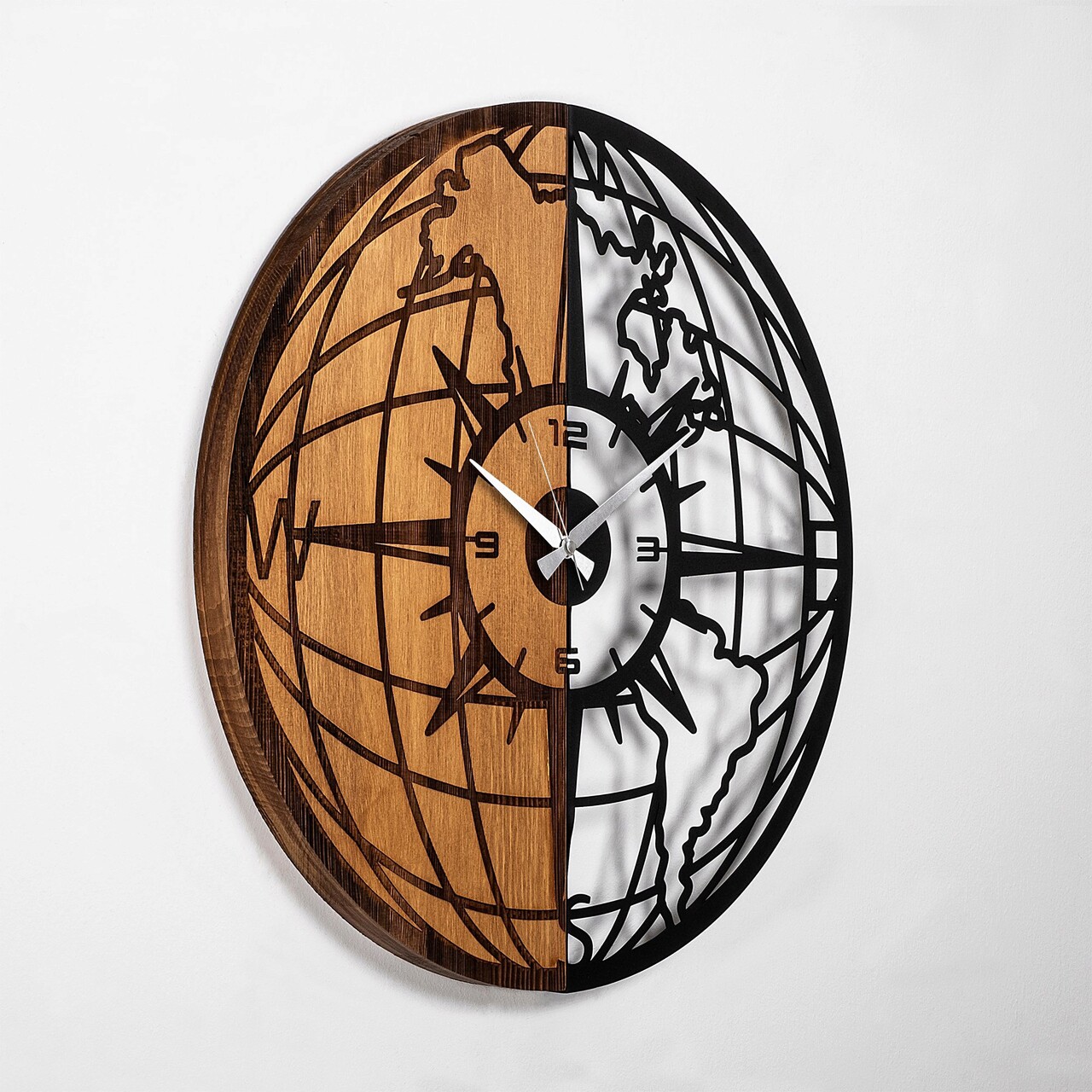 Ceas de perete, Wooden Clock, Lemn/metal, ø56 cm, Nuc / Negru