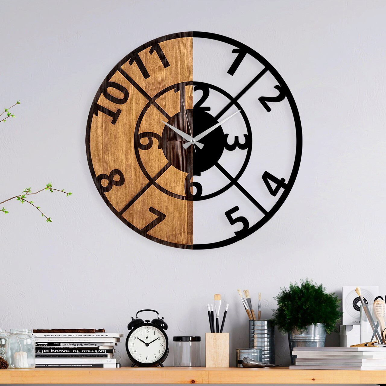 Ceas de perete, Wooden Clock, Lemn/metal, ø56 cm, Nuc / Negru