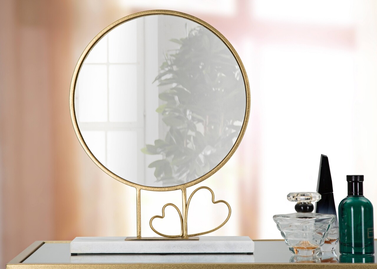 Oglinda de masa Heart, Mauro Ferretti, 30×39.5 cm, fier/marmura, auriu