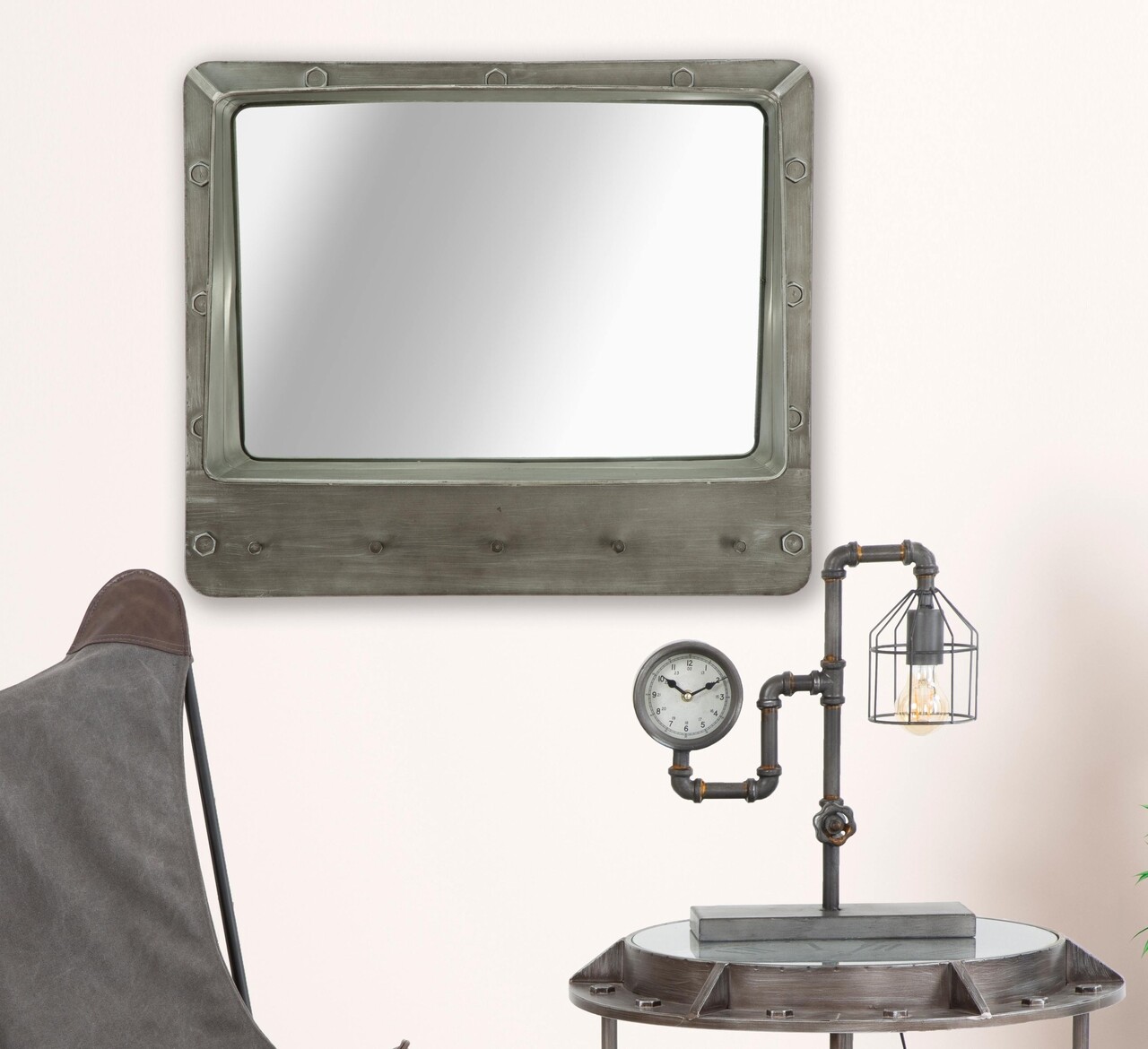 Oglinda decorativa Bolt, Mauro Ferretti, 70×60 cm, fier, gri