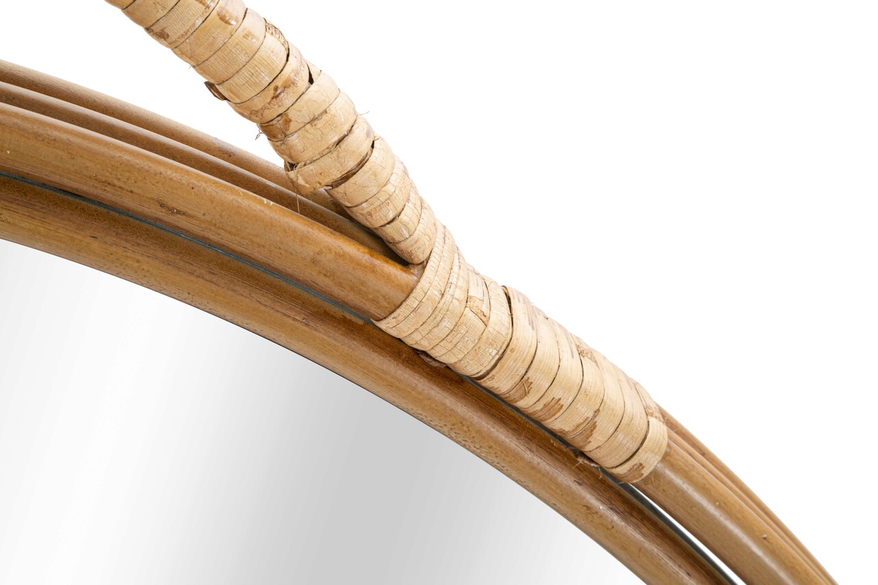 <p>Oglinda rotunda de perete cu finisaje elegante din ratan. <br /><strong>Mentiuni</strong><br />Dimensiuni oglinda: 74 cm.<br />Compozitie material: fier, plastic, ratan.</p>