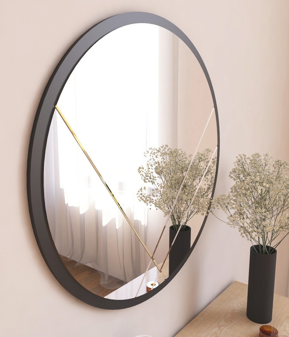<p>Oglinda rotunda<br/><br/>Latime: 60 cm <br/> Inaltime: 60 cm <br/> Adancime: 2,2 cm<br/><br/>Oglinda ecologica Flotal-E<br/><br/>Poate fi fixat pe perete<br/></p>