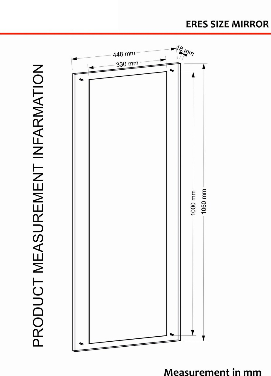 <p>Grosime: 18 mm<br/><br/>Marime: Latime: 44,8 cm <br/> Inaltime: 105 cm <br/> Adancime: 1,8 cm<br/><br/>Poate fi fixat pe perete<br/><br/>Oglinda inclusa<br/></p>